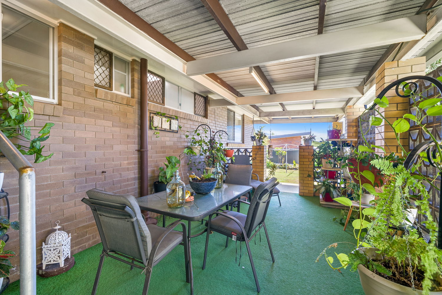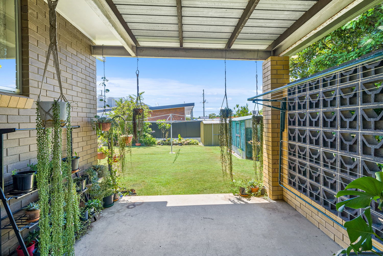 * Large, covered patio area with breezeblocks