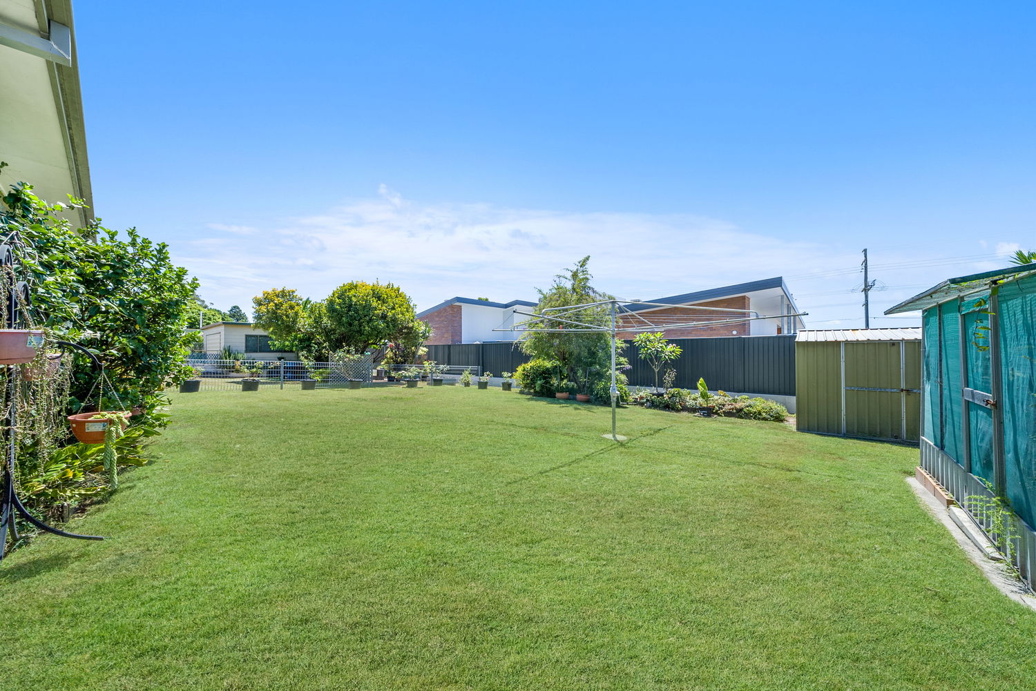 Outside you have a large, covered patio area with breezeblocks providing a great place to relax and unwind with a coffee or glass of wine. However, the real bonus of this property is the spacious north facing backyard, perfect for kids and pets to play or if you are an avid gardener there is a mesh greenhouse and plenty of space to create your very own veggie garden.