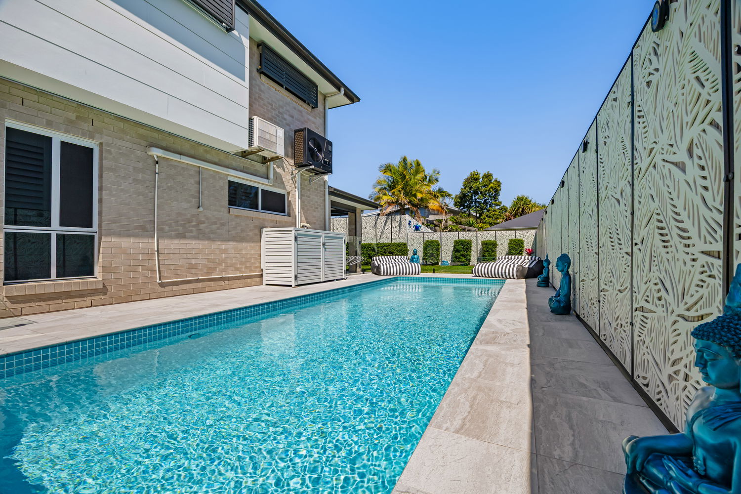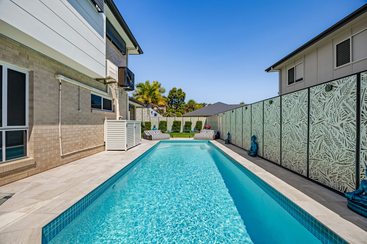 Outside, your private oasis awaits — cool off on hot summer days in your resort-quality 9m x 3m concrete pool, complete with a heat pump for extended year-round swimming. Retractable zip-track blinds let you enjoy poolside alfresco dining long into those warm summer nights.