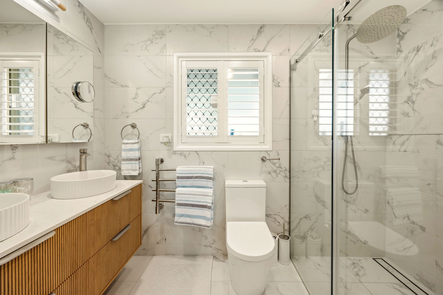 All four bedrooms are located on the upper level of the home. The master suite features a large walk-in robe and a fully renovated ensuite complete with double vanity, large shower and heated towel rail offering a private retreat positioned away from the other three bedrooms. The additional three bedrooms are generous in proportion. All four bedrooms feature new ceiling fans and new reverse cycle air-conditioning units.