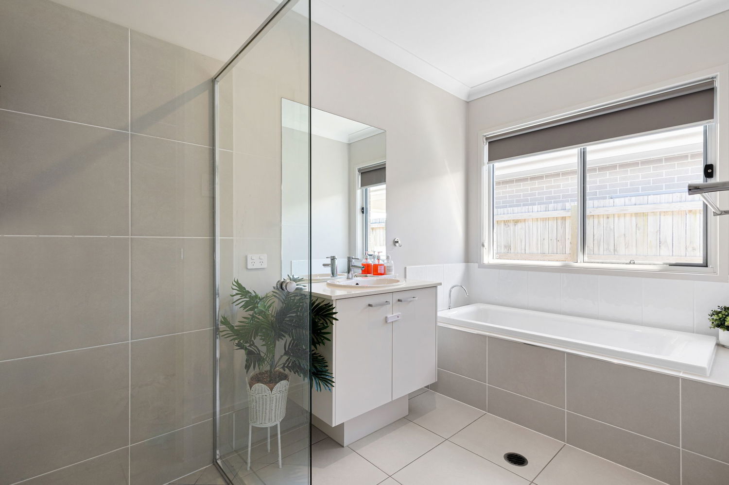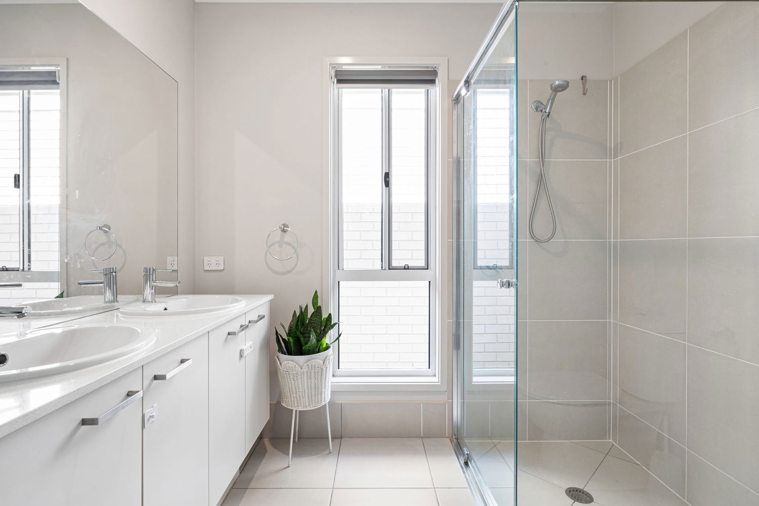 Two stylish bathrooms with sleek finishes and quality fixtures