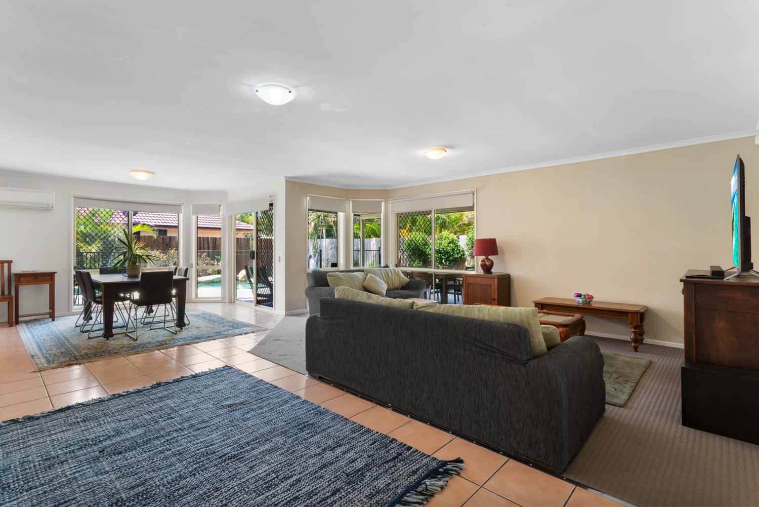 • Light filled open plan living and dining with air conditioning