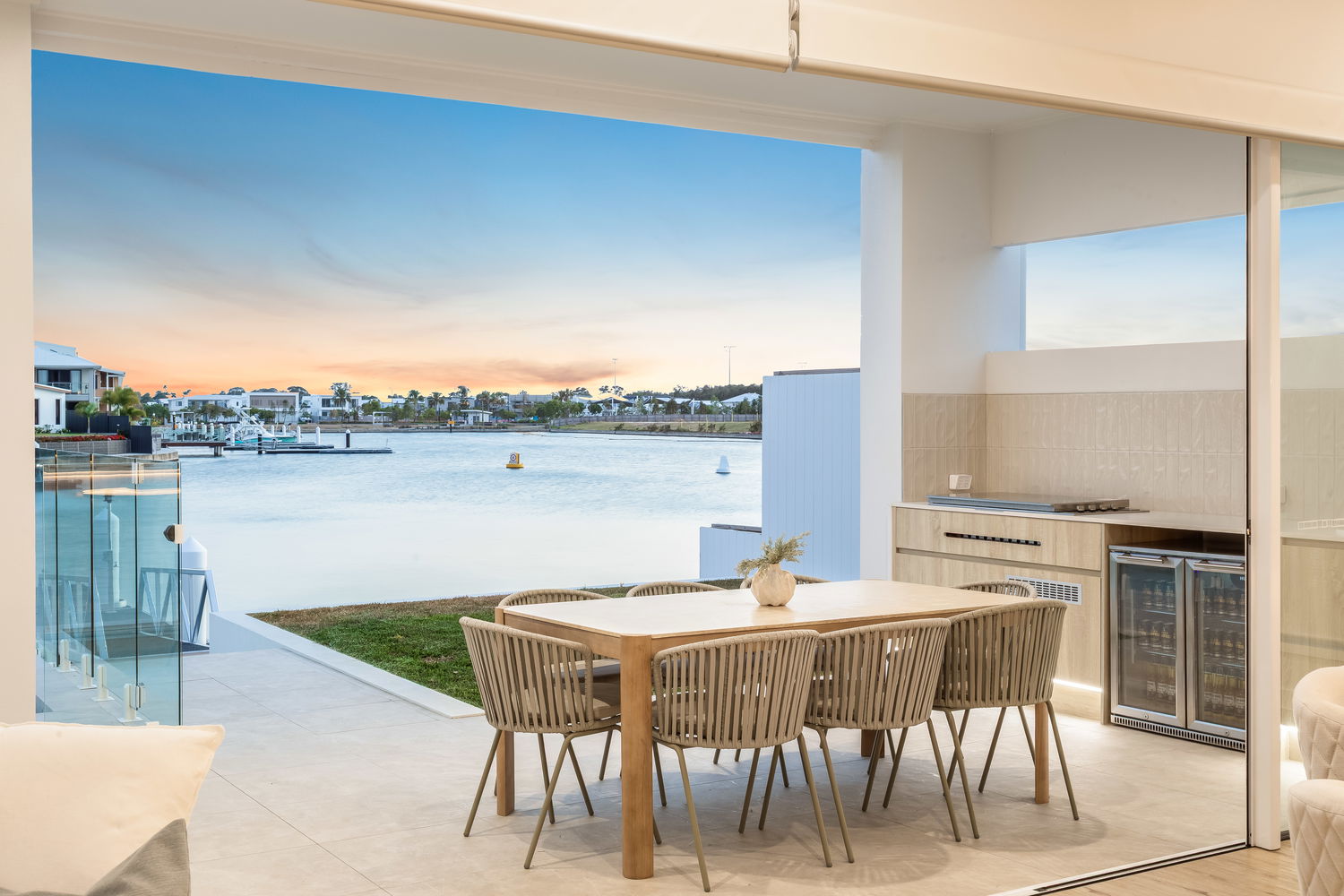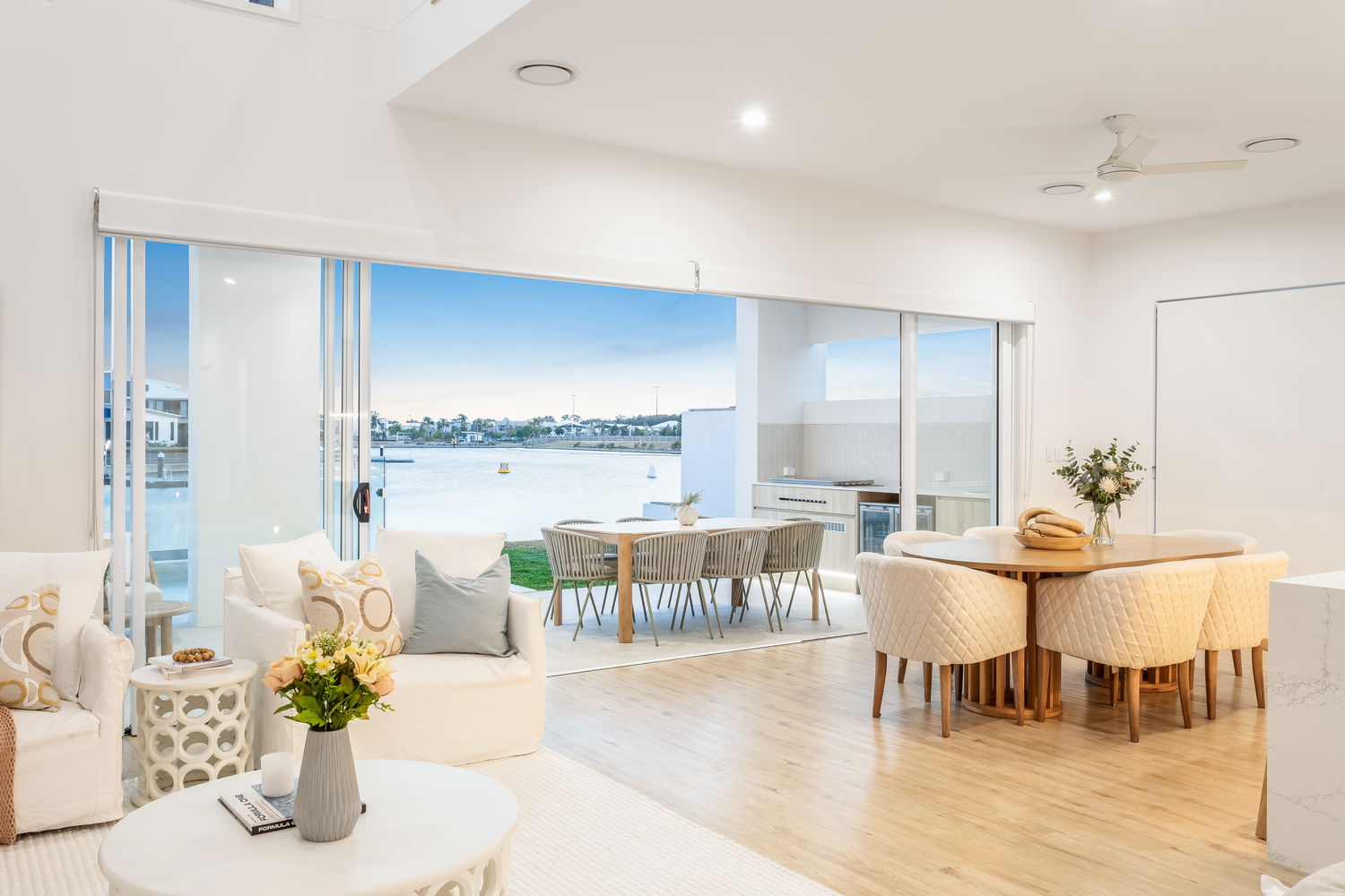Step inside to discover an expansive open-plan layout where natural light and clean lines create a calm, coastal ambience. The gourmet kitchen serves as the heart of the home – complete with stone benchtops, premium appliances, and a large walk-in pantry – flowing effortlessly to the dining and living zones, and beyond to the outdoor entertaining area and landscaped yard.