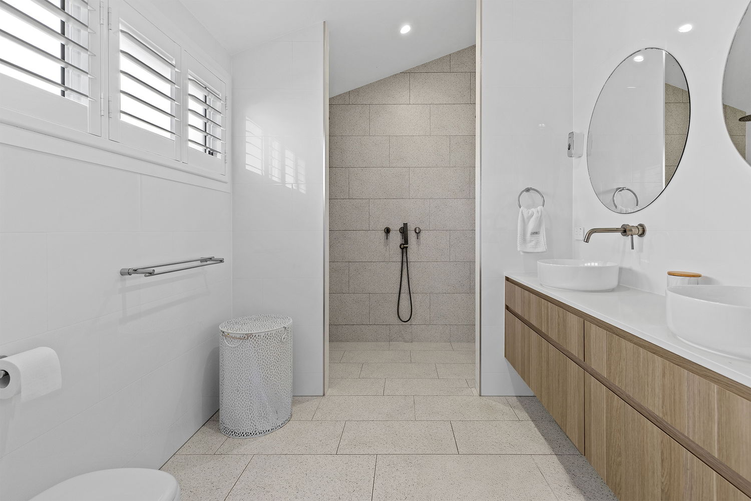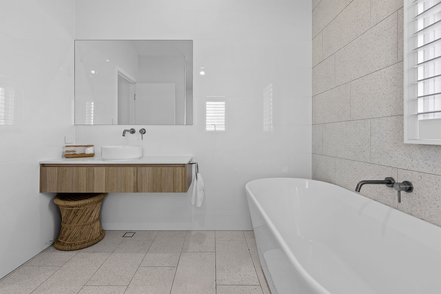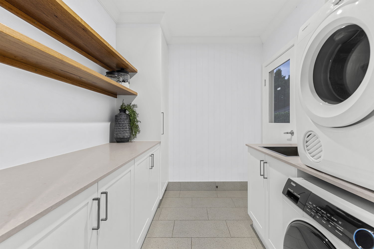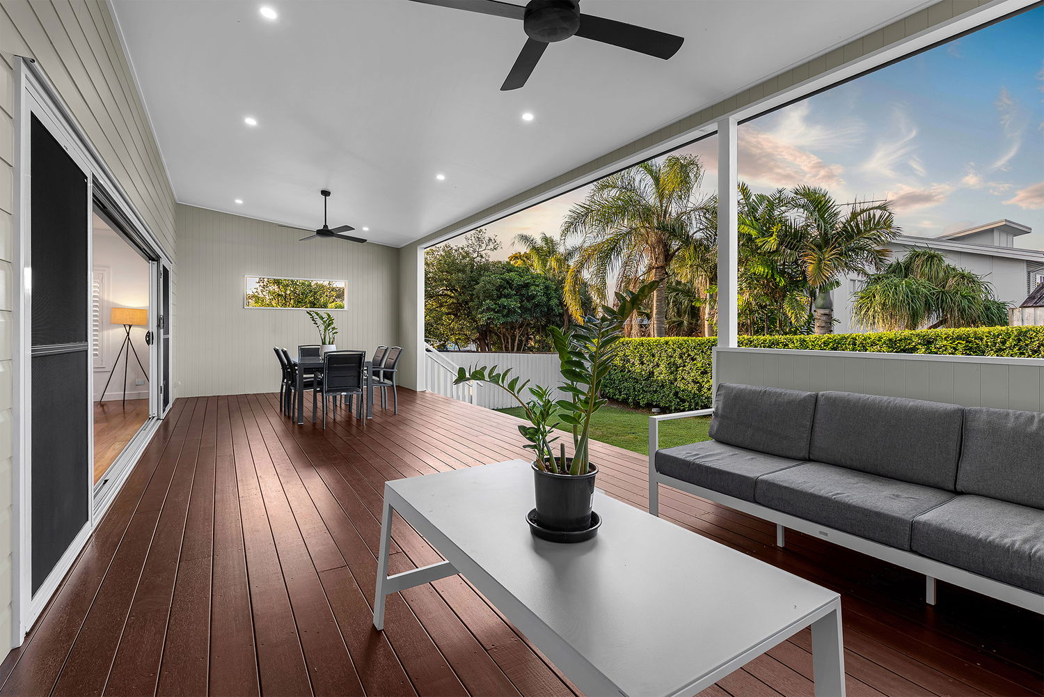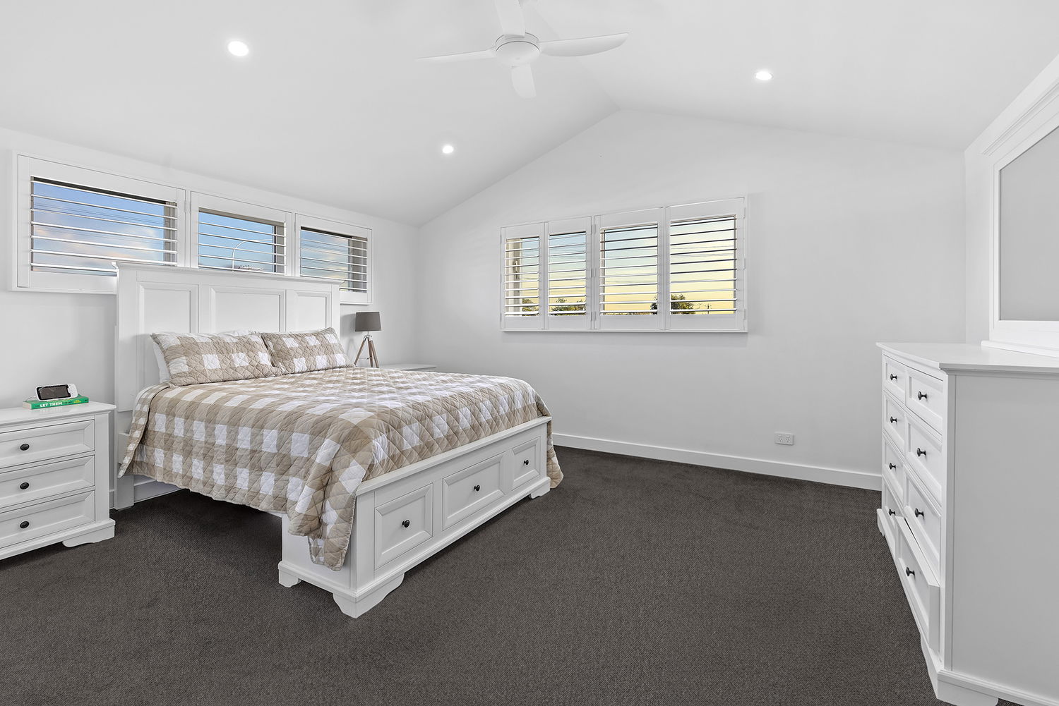 Framed by refreshing bay breezes and the scent of the sea, the home features polished Blackbutt timber floors, panelled walls, high ceilings and a soft coastal palette. Proudly built by Mair Constructions, the layout has been crafted for seamless everyday living and effortless entertaining.