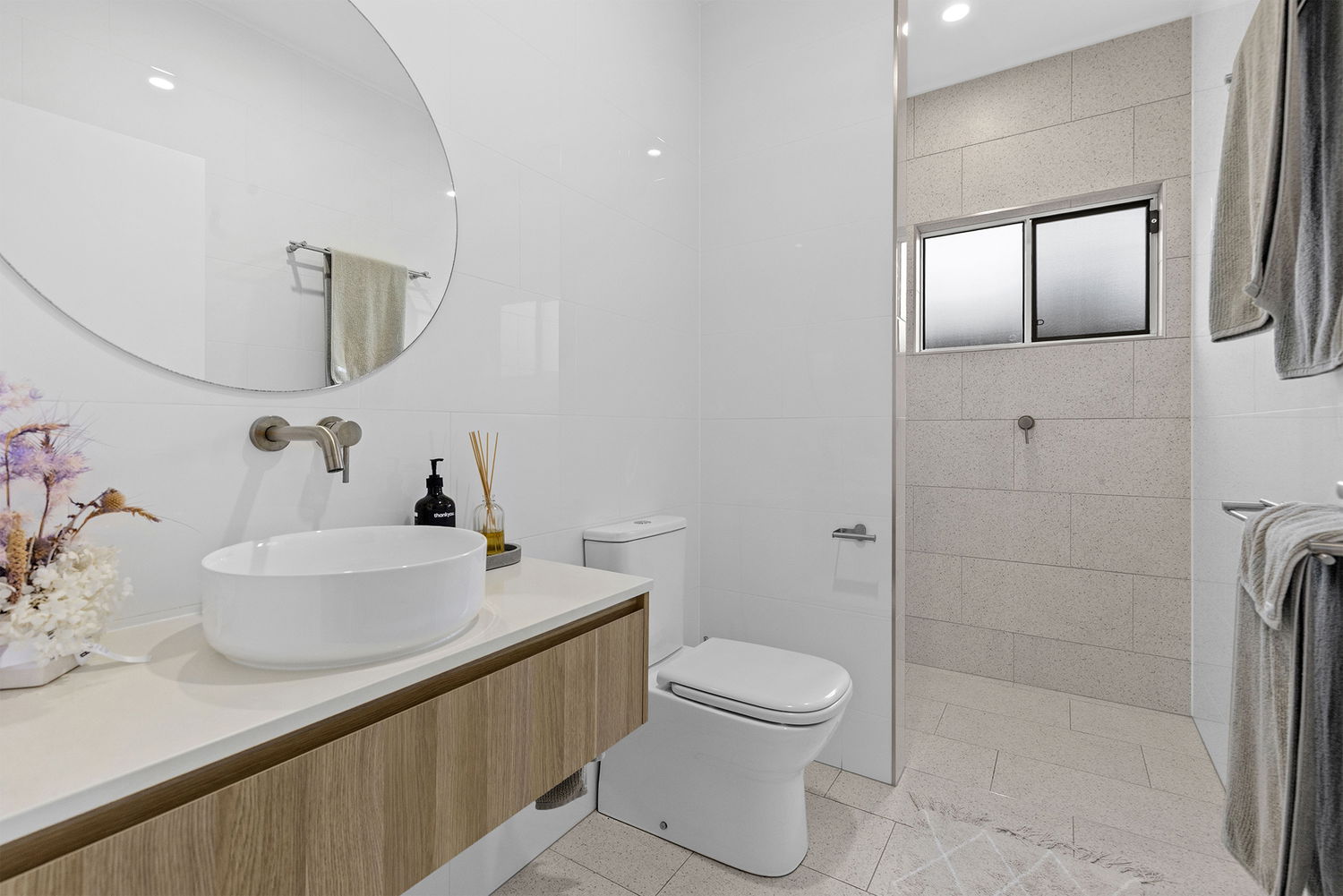 The lower level also includes a spacious fifth bedroom and a full bathroom—ideal for guests, extended family or flexible living arrangements. Upstairs, 3-metre ceilings enhance the bright and airy second living area. The stunning master suite features a walk-through wardrobe and a beautifully finished ensuite with dual showerheads. Three additional bedrooms—each with built in’s, ceiling fans and one with a built-in desk —share a stylish family bathroom and a separate powder room, providing convenience for busy households.