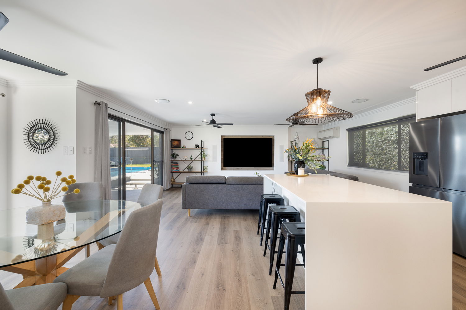 Positioned in a sought-after Redcliffe pocket, on a generous 832m² block, this beautifully renovated home has been designed with lifestyle in mind. At its heart, the open plan living, dining and kitchen create a welcoming hub for family life and entertaining, seamlessly flowing out to the outdoor entertaining area that overlooks the spacious yard and sparkling pool. Whether you’re hosting friends, enjoying weekend BBQs, or simply relaxing poolside, every detail of this home has been crafted to maximise comfort, connection, and Queensland’s year-round outdoor living.
