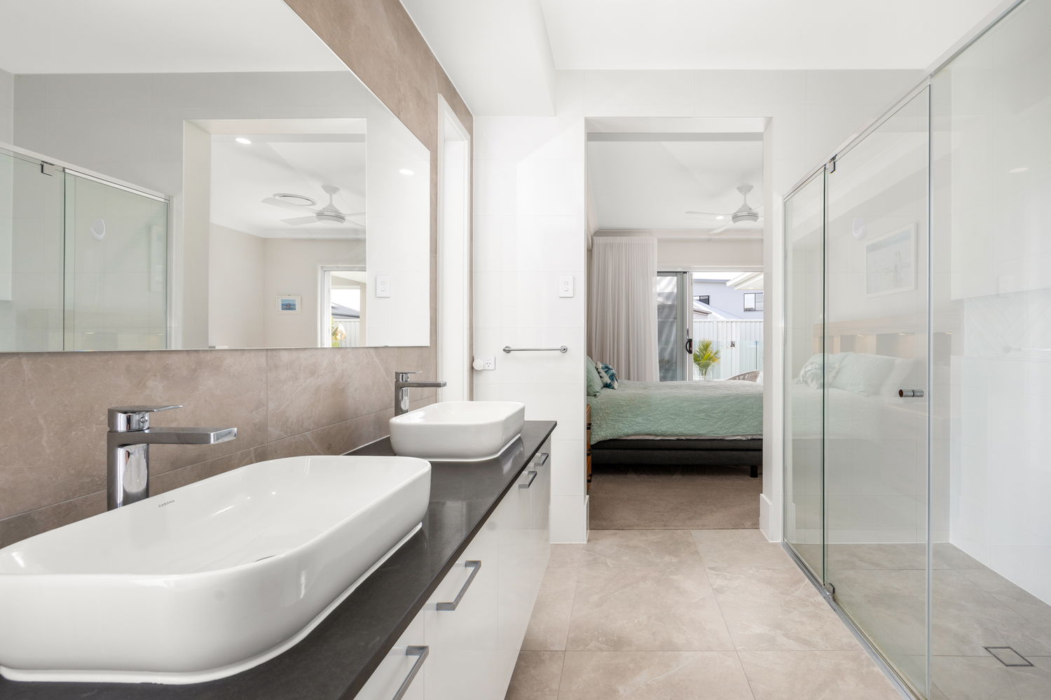 The impressive master suite is privately located at the rear and serves as a luxurious retreat. With direct access to the backyard and pool area, it features a generous walk-in robe and a well-appointed ensuite with dual vanities.