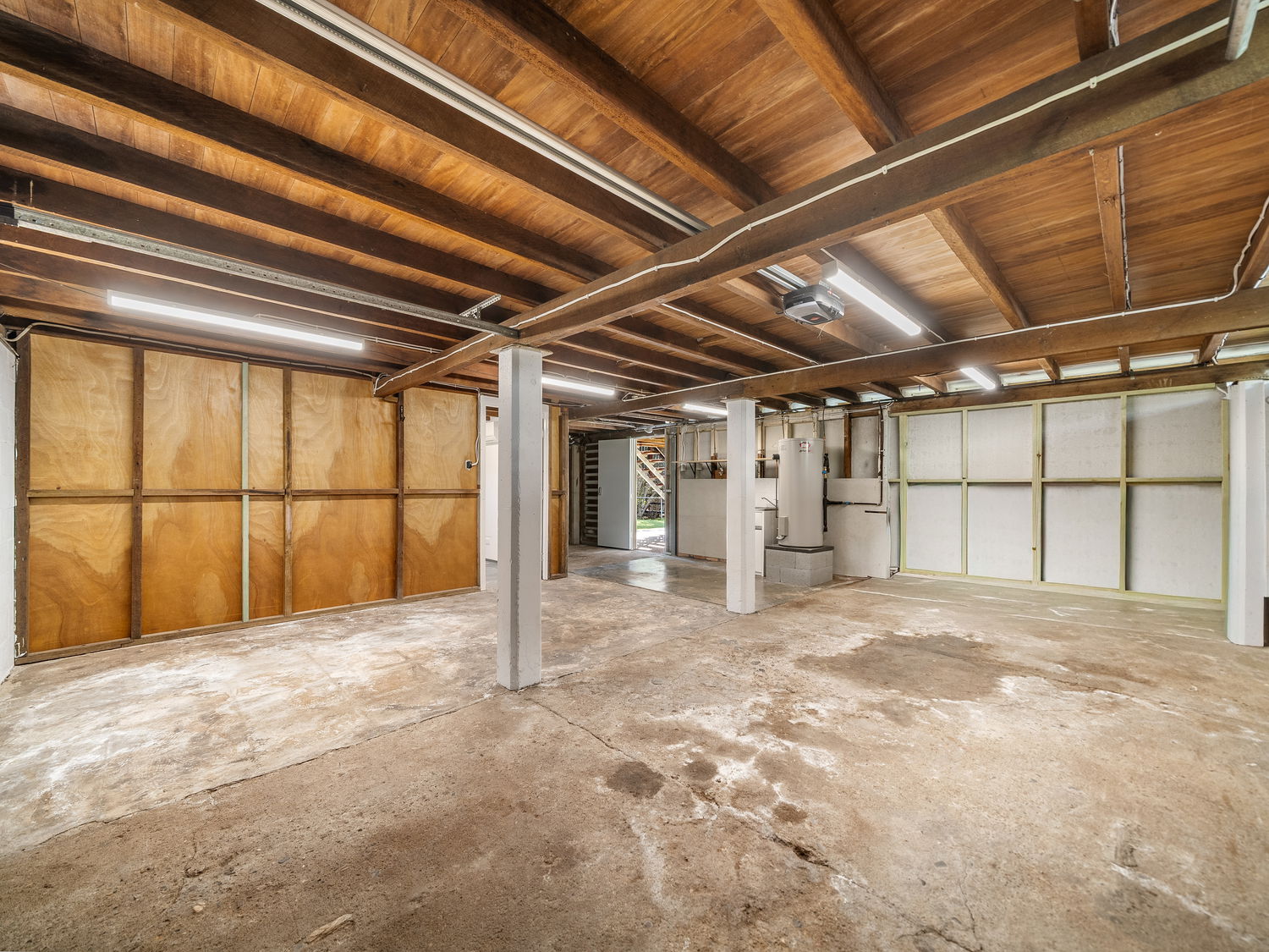 Downstairs, the property offers exceptional versatility with a double lock-up garage, laundry, and a large storage or workshop room. There’s also a covered patio area that provides a sheltered retreat or additional entertaining space — a great complement to the upper deck. This level presents incredible potential for further development, whether as a rumpus area, studio, or dual-living conversion.