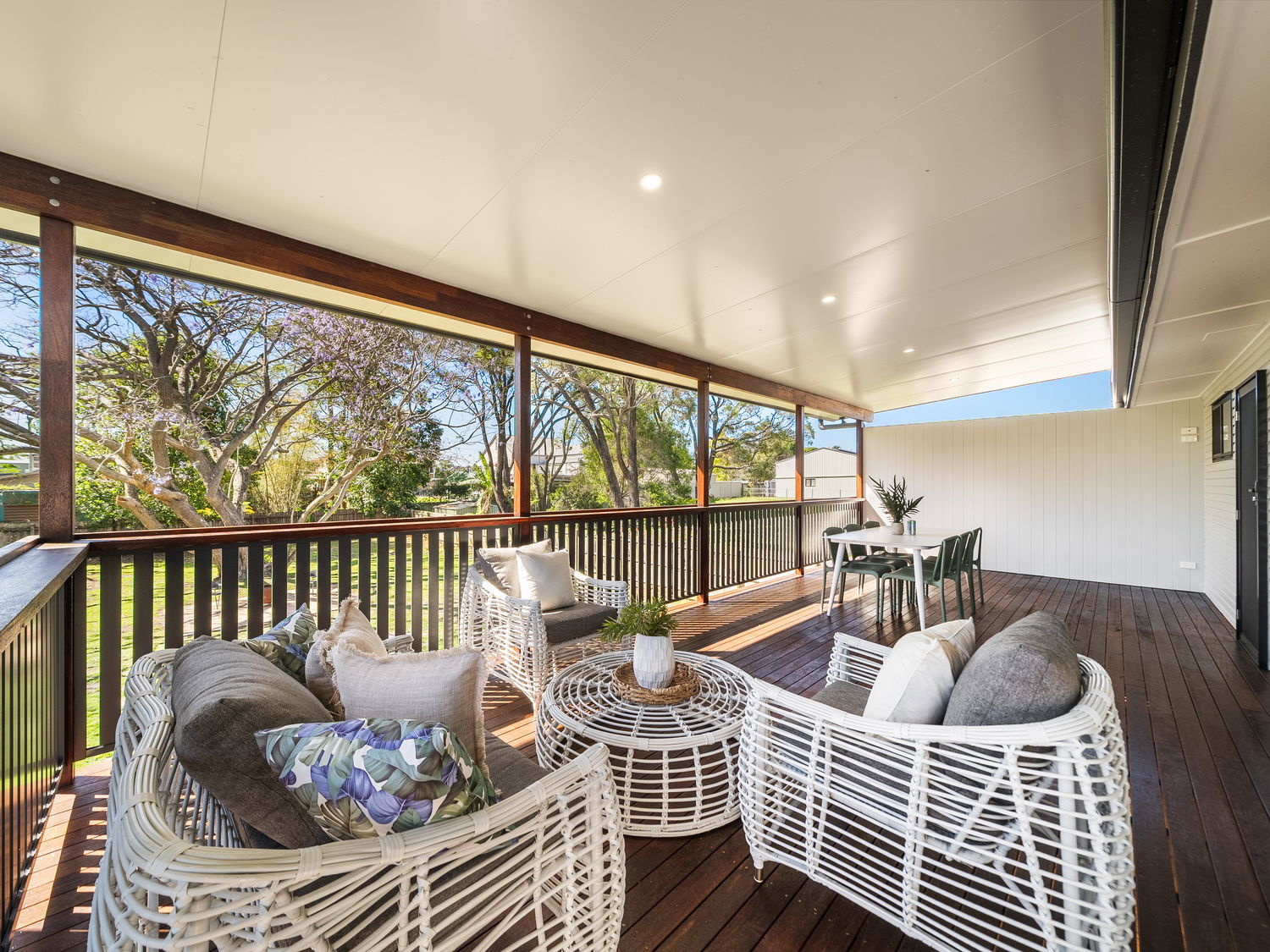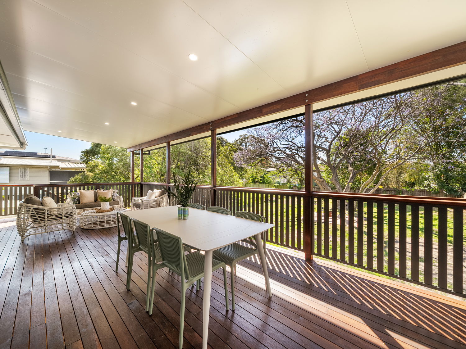 Step out from the kitchen and dining area to the expansive covered deck — the ultimate outdoor living zone. Overlooking the lush backyard, this space is perfect for hosting weekend barbecues, relaxing with a morning coffee, or watching the kids play safely below. With its elevated aspect and generous proportions, it’s an entertainer’s dream.