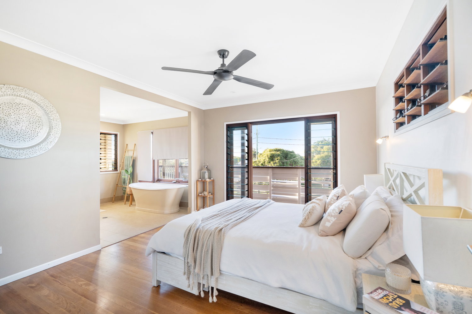 Upstairs is the spacious main suite with access to the north facing verandah for a quiet moment alone with your morning coffee. It comes with a delightful open plan ensuite and sizable walk in robe.