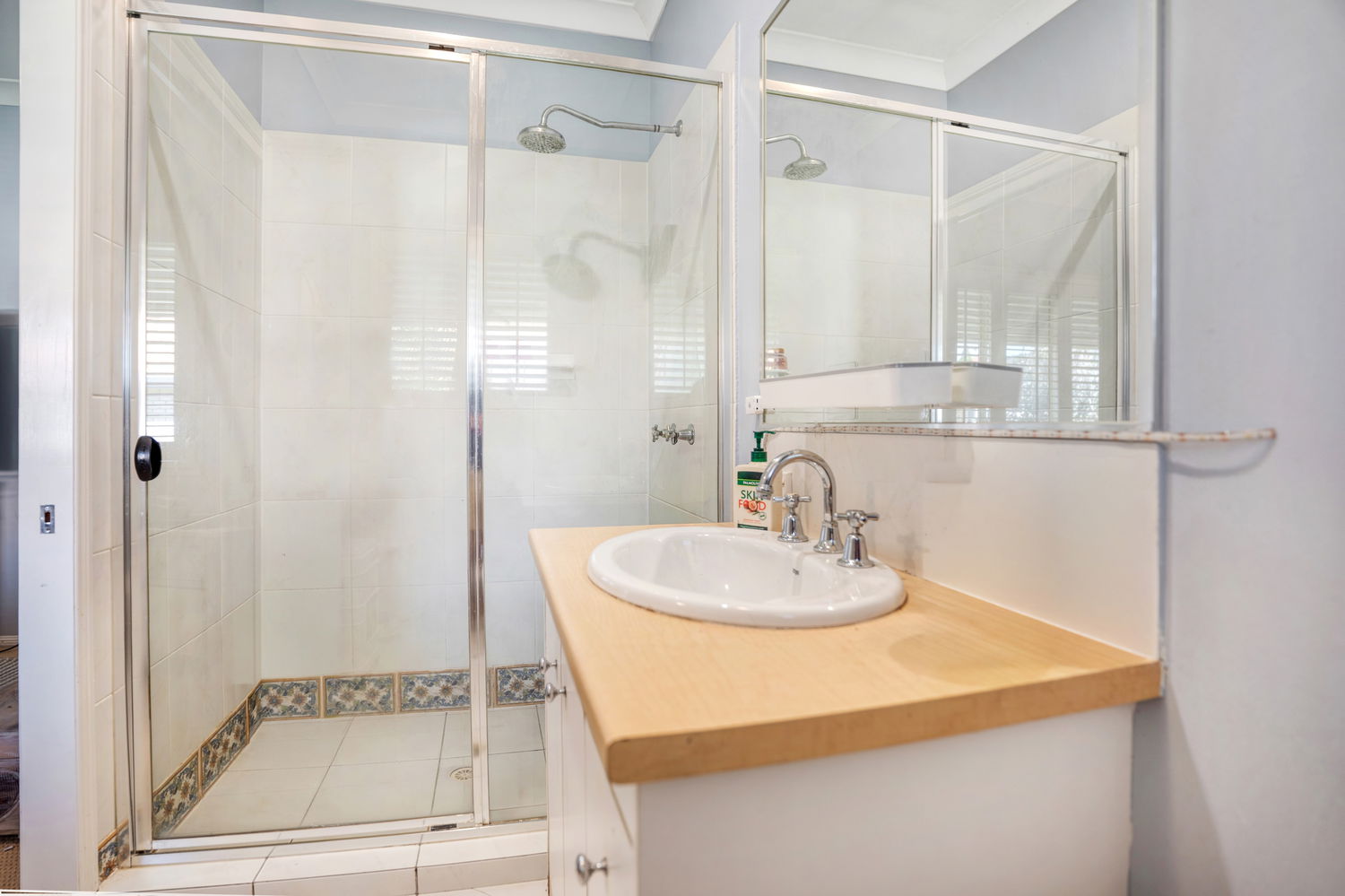 # Ensuite with single shower, toilet and storage to vanity