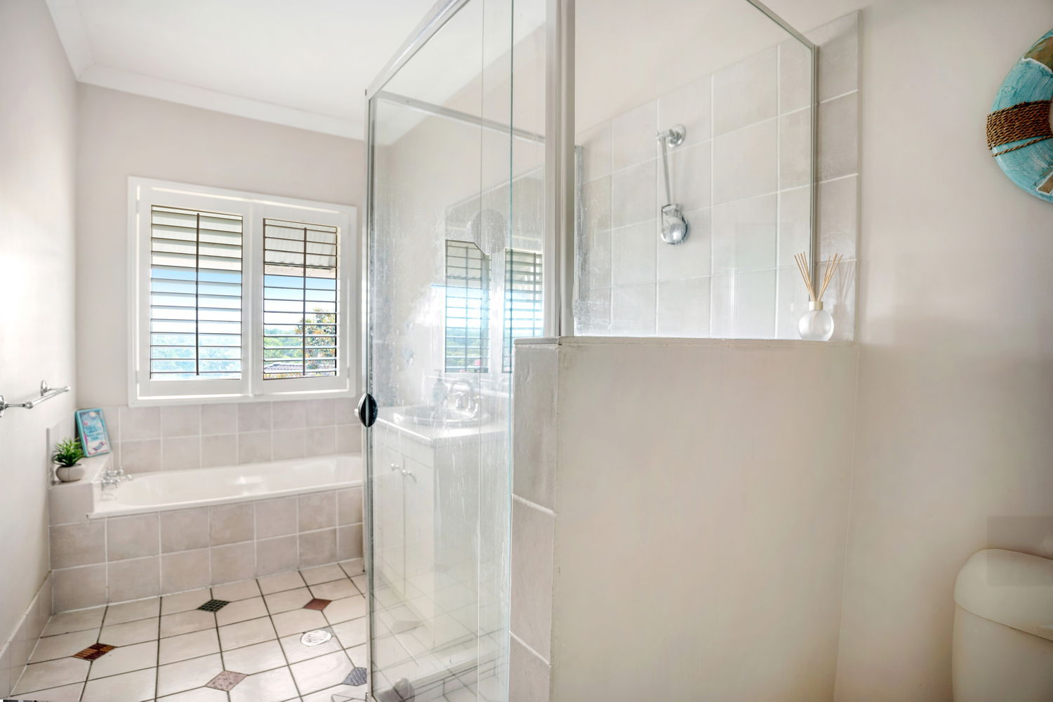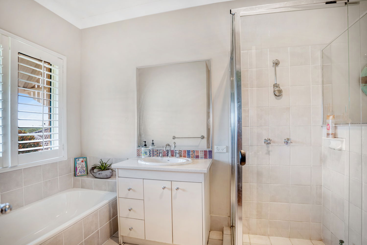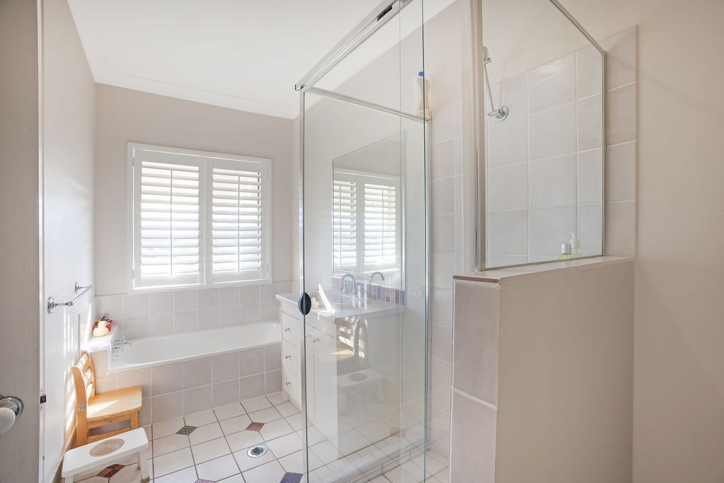 # Family bathroom with separate shower, bathtub, vanity with storage and separate toilet