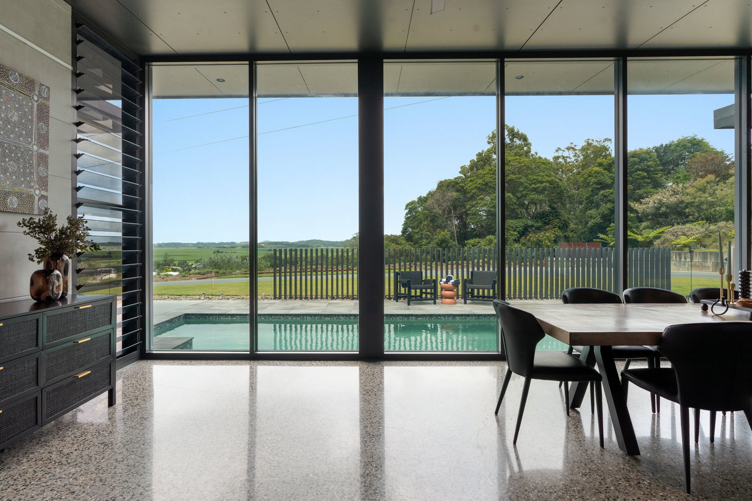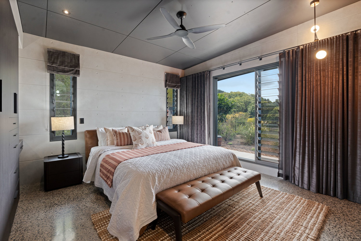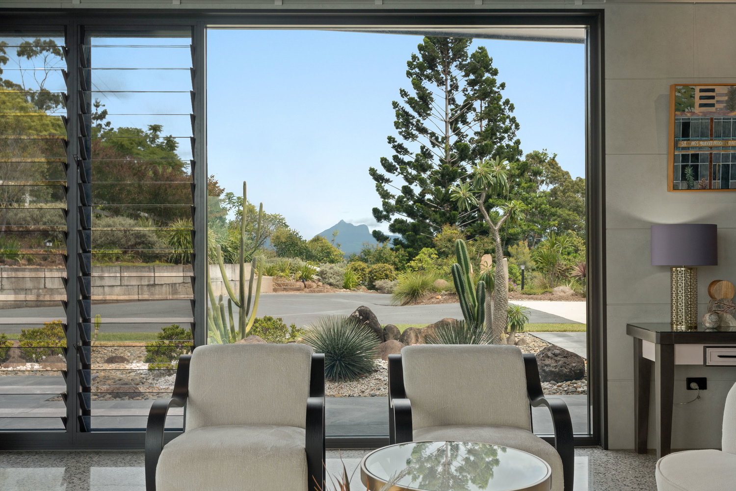 From the moment you arrive, a sense of privacy and prestige is immediate. A newly laid driveway winds through beautifully curated grounds, where sculptural stonework, mature cacti and professionally designed landscaping set a striking tone against the natural surrounds. As you approach the residence, breathtaking panoramic views unfold, stretching across the river, valley and out to Mount Warning, creating a truly captivating first impression.