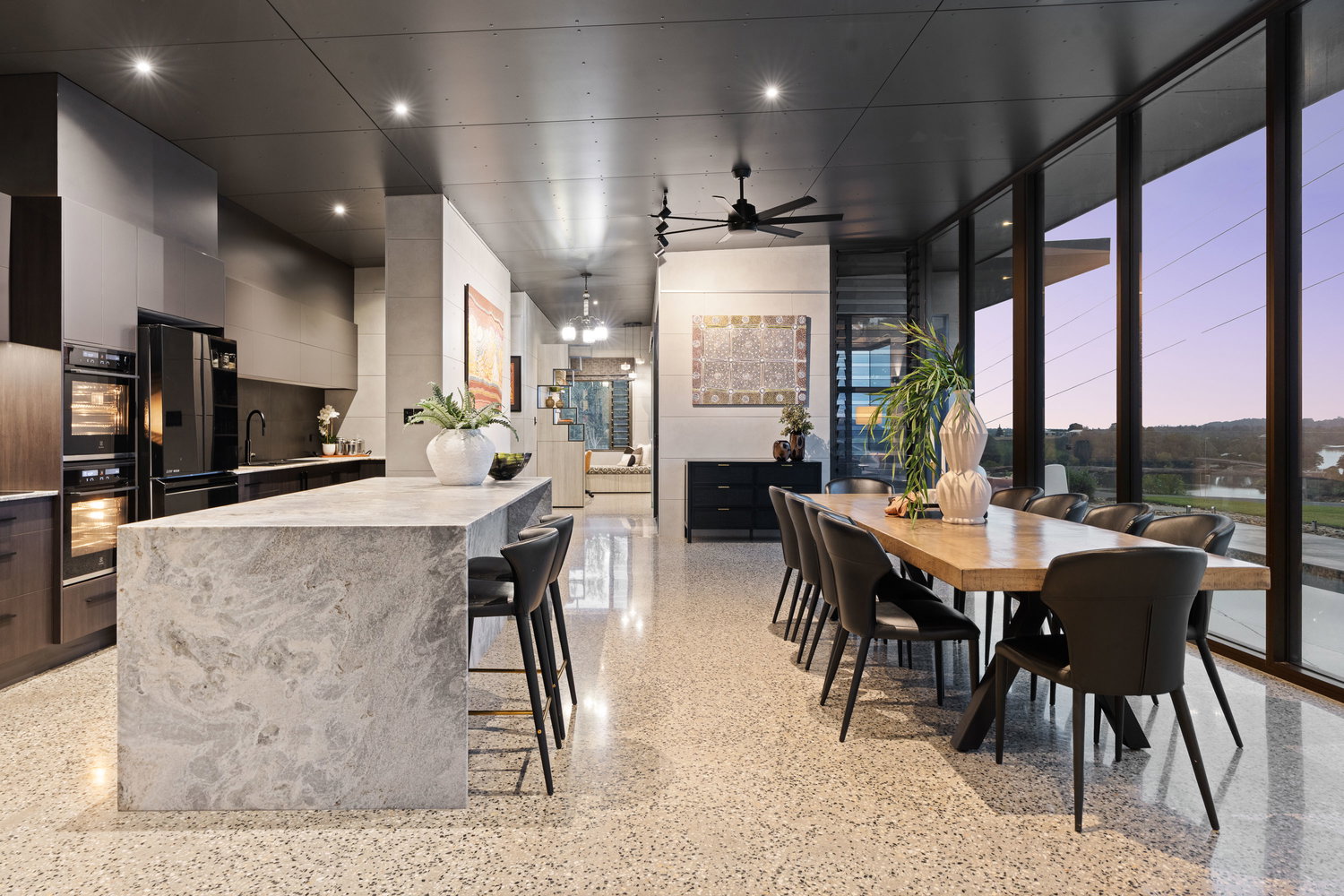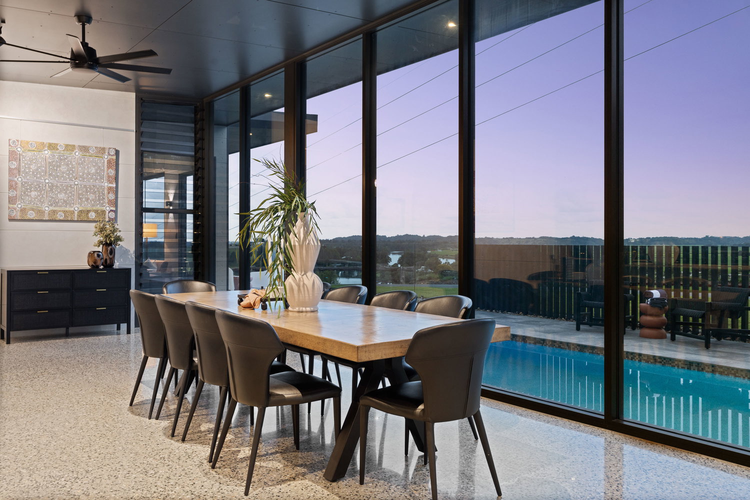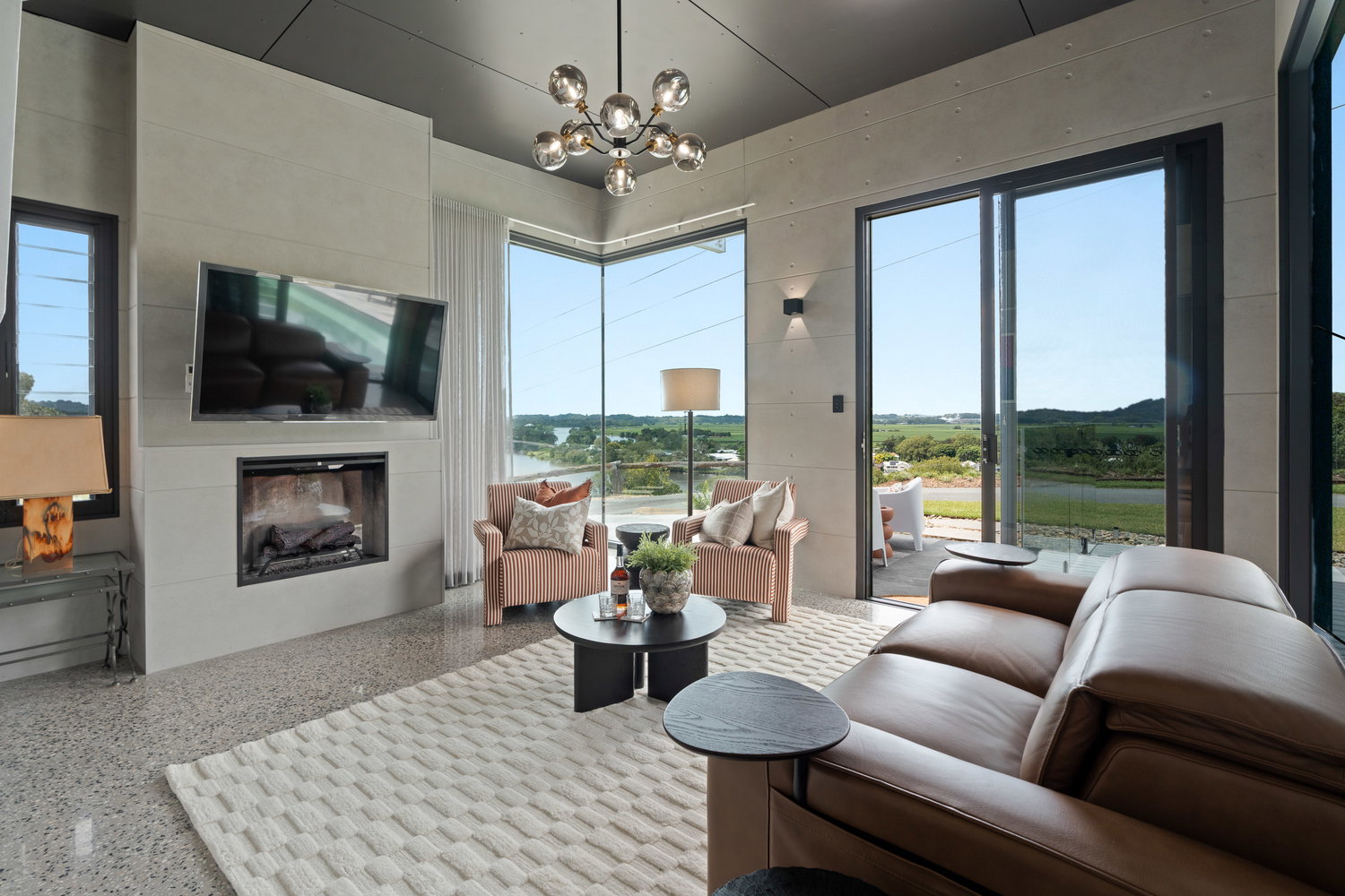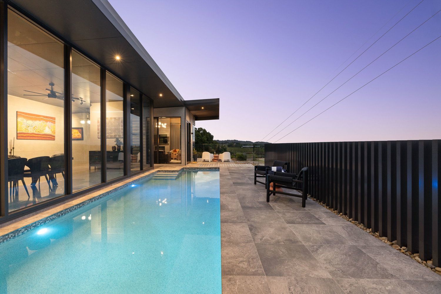 The main residence is a bold statement in contemporary design, defined by its clean lines, premium materials and no plaster, no paint construction, ensuring both visual impact and enduring quality. Inside, expansive open plan living, dining and kitchen zones are bathed in natural light, with polished concrete floors and extensive glazing drawing your eye directly to the breathtaking outlook. The scale is impressive, yet the connection to the outdoors remains seamless, flowing effortlessly to a resort style entertaining area centred around a heated magnesium swimming pool.