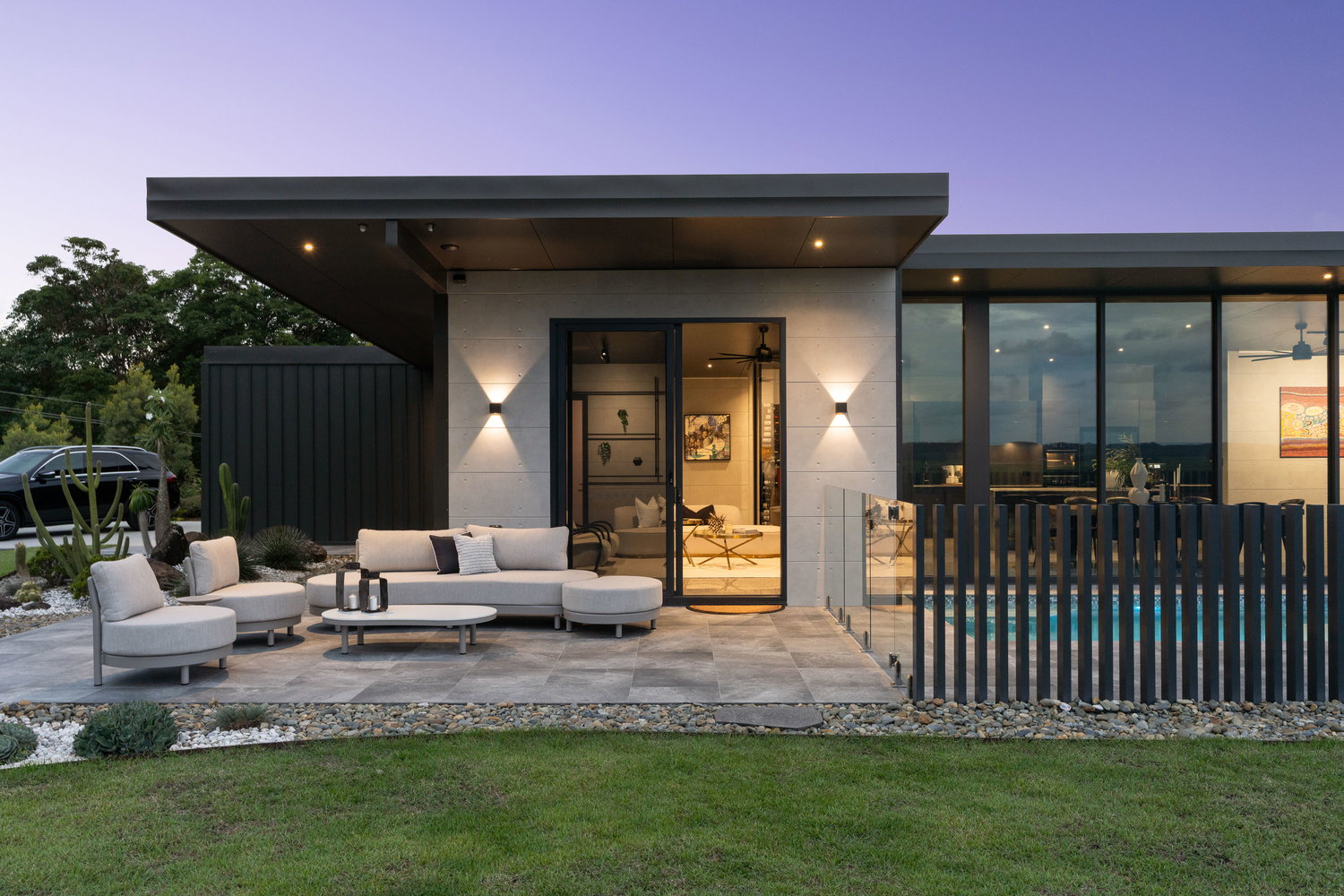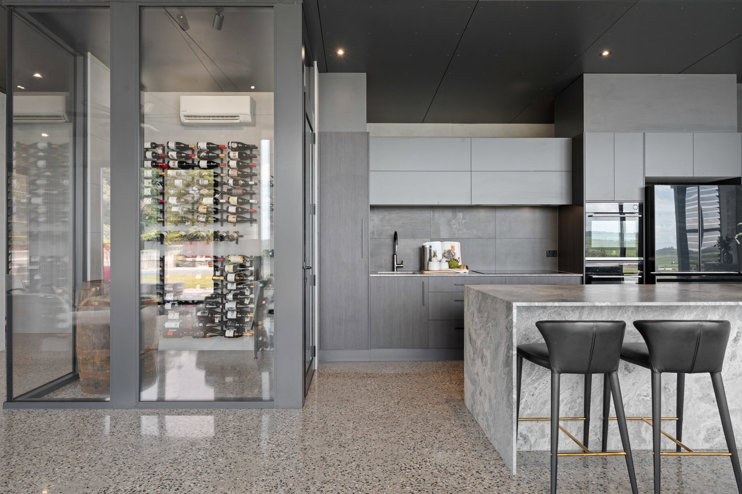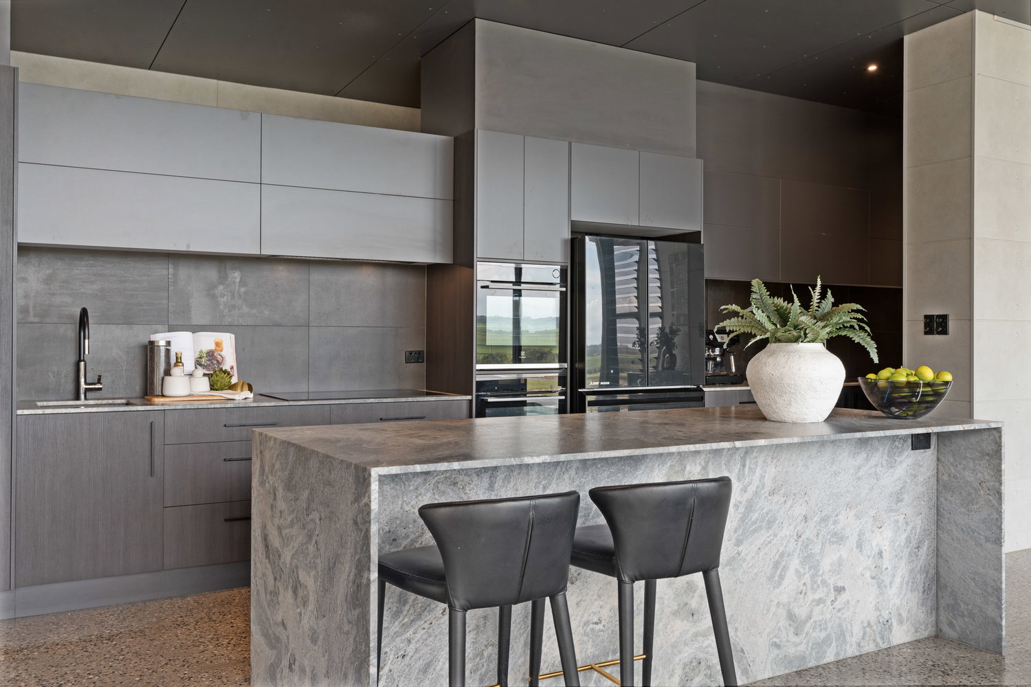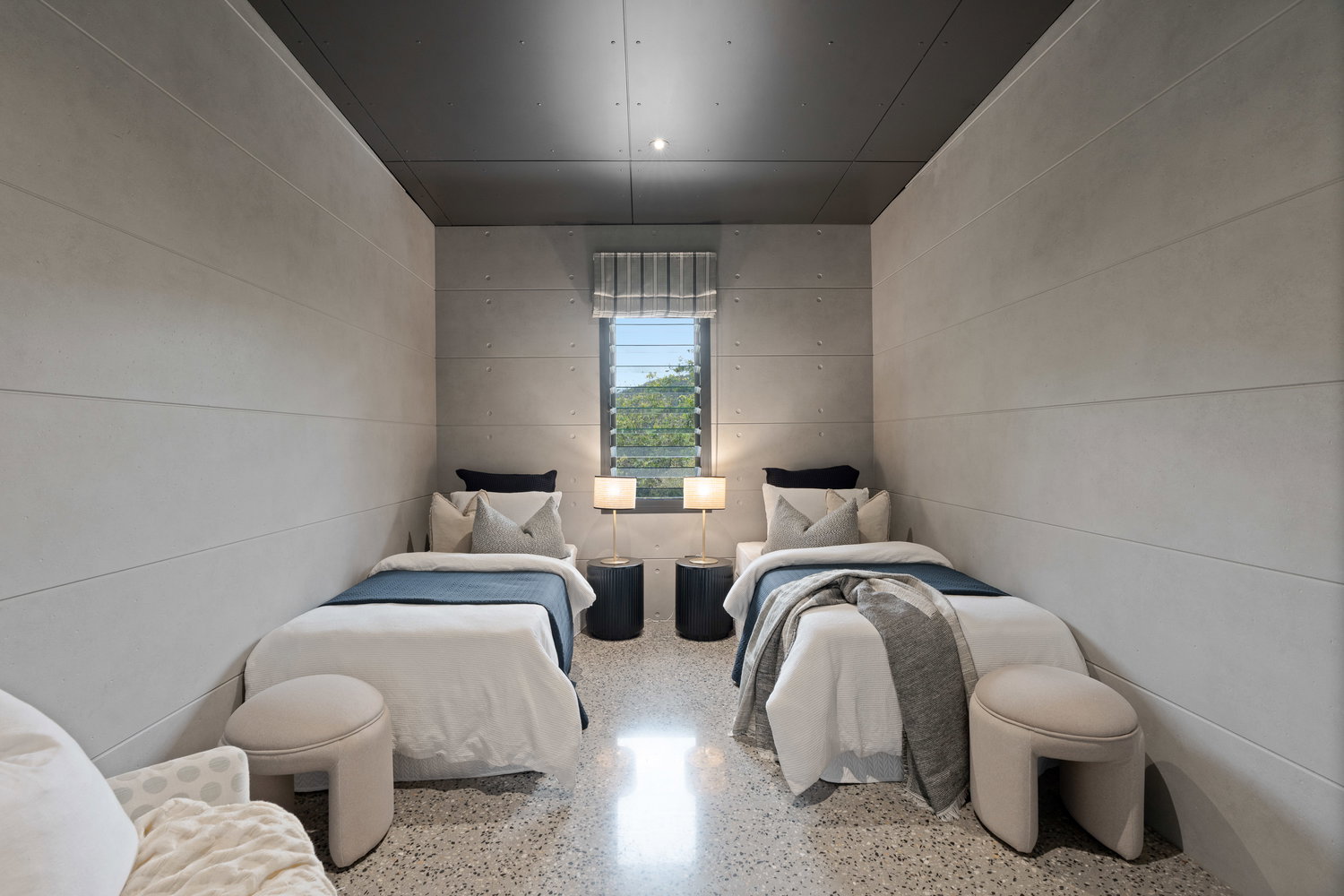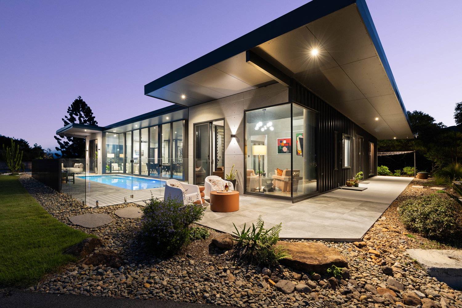 The main residence is a bold statement in contemporary design, defined by its clean lines, premium materials and no plaster, no paint construction, ensuring both visual impact and enduring quality. Inside, expansive open plan living, dining and kitchen zones are bathed in natural light, with polished concrete floors and extensive glazing drawing your eye directly to the breathtaking outlook. The scale is impressive, yet the connection to the outdoors remains seamless, flowing effortlessly to a resort style entertaining area centred around a heated magnesium swimming pool.