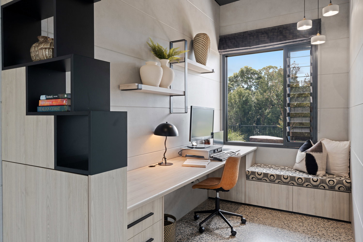 A second living zone provides additional flexibility, while a dedicated open plan study area caters perfectly to those working from home. Every detail has been considered, from custom joinery and window furnishings to advanced glazing and full Crimsafe security throughout.