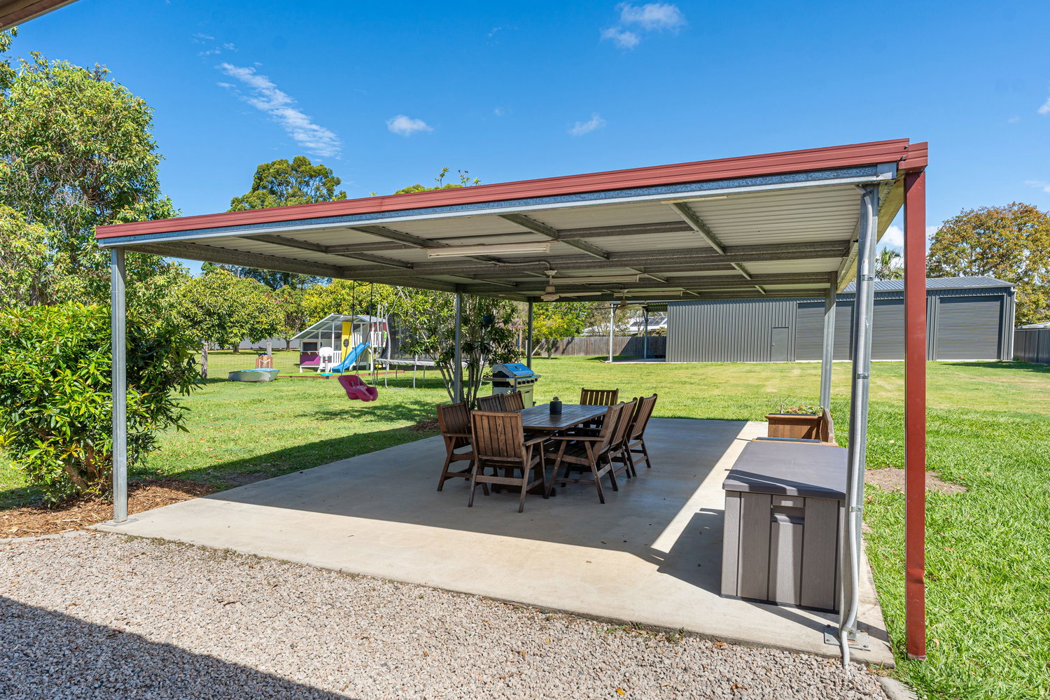 The shed and attached carport is truly every man’s dream. Store the hot rods, boat, caravan, Jet Ski and much, much more, all under the one roof.