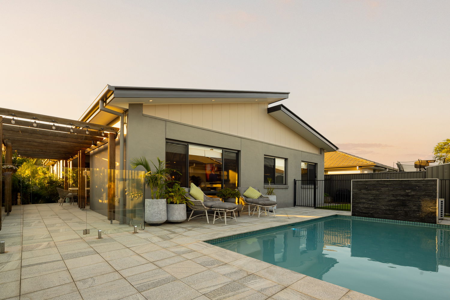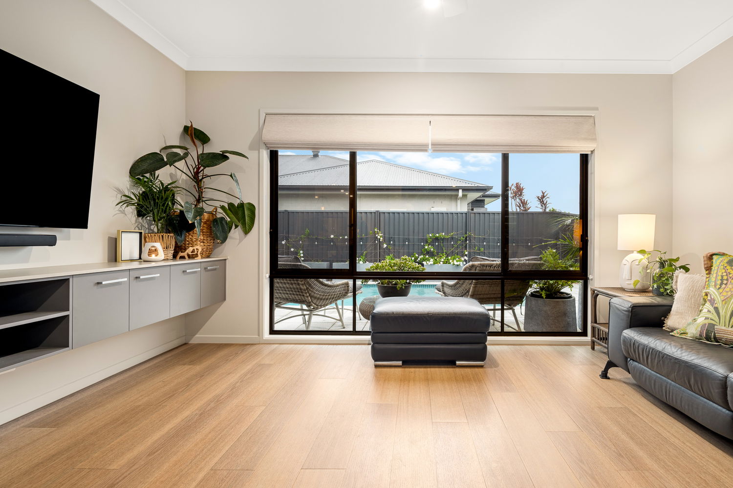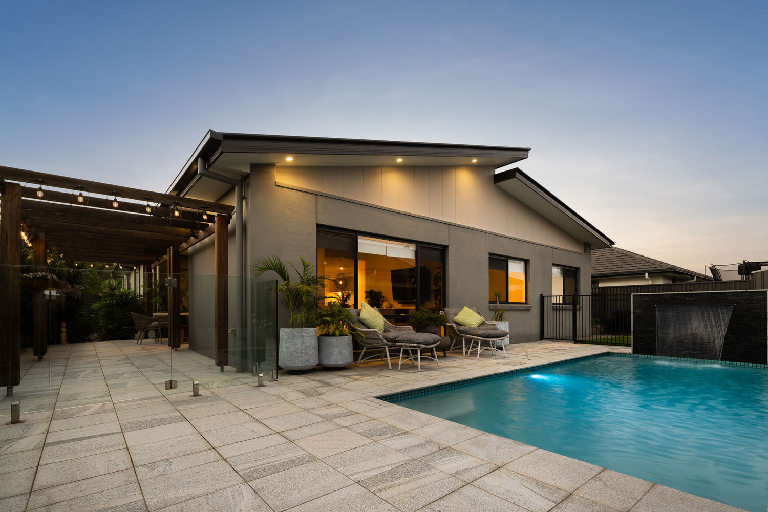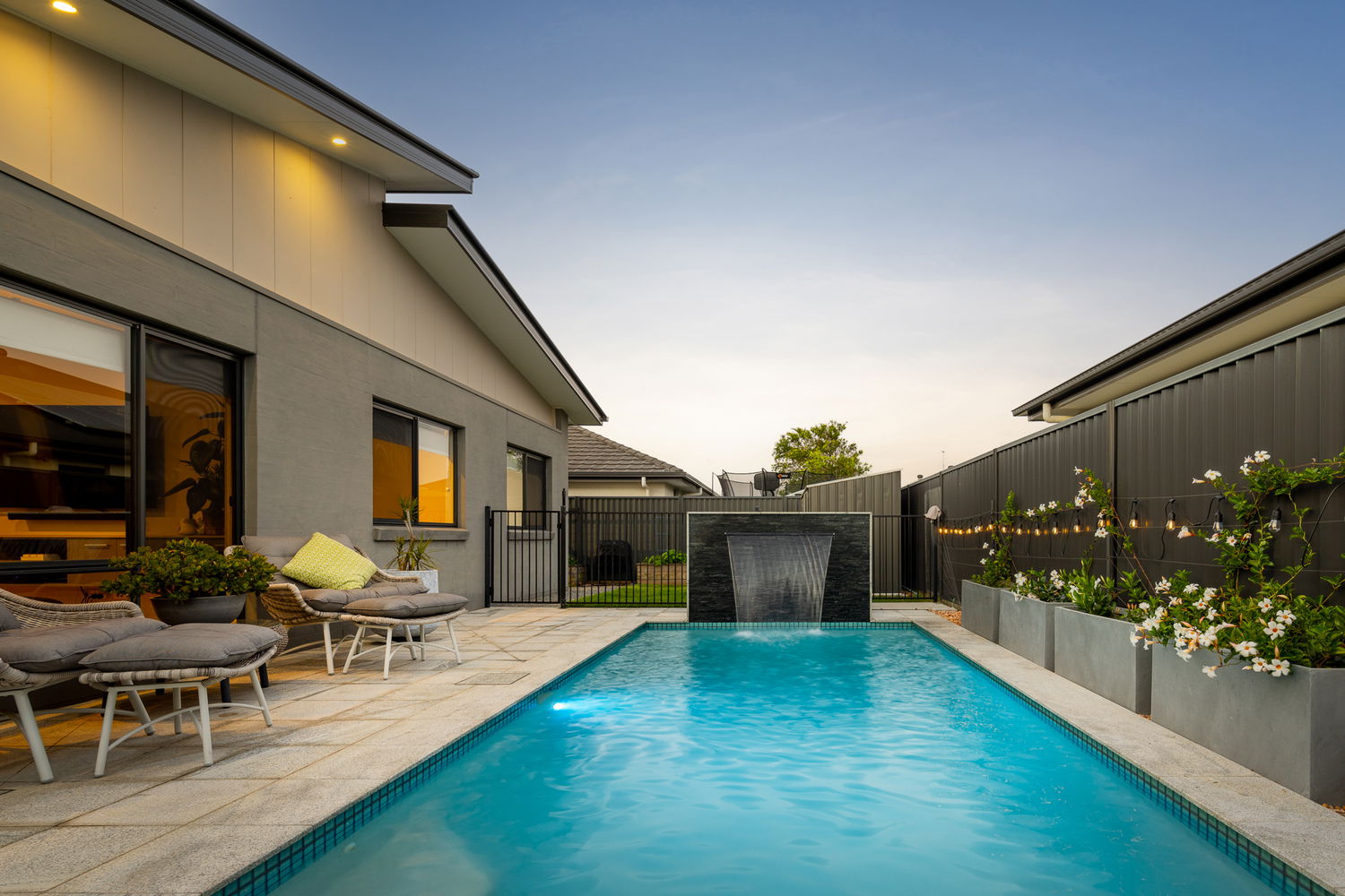 The effortless flow continues through to the open-plan living and dining zones, connecting seamlessly to an undercover outdoor entertaining haven complete with a stylish pergola overlooking the magnesium pool. Dive into resort-style living with in-pool lighting, electric heat pump pool heater, dimmable eave lights, and a fully tiled lounging area, designed for both sophistication and family fun.