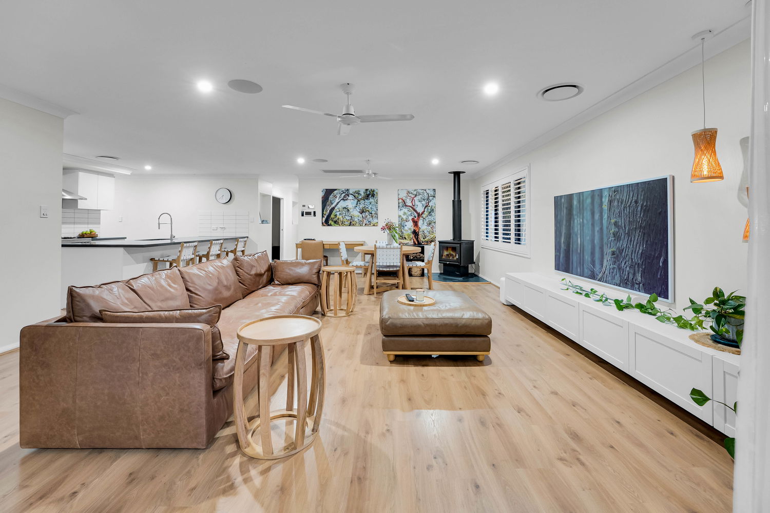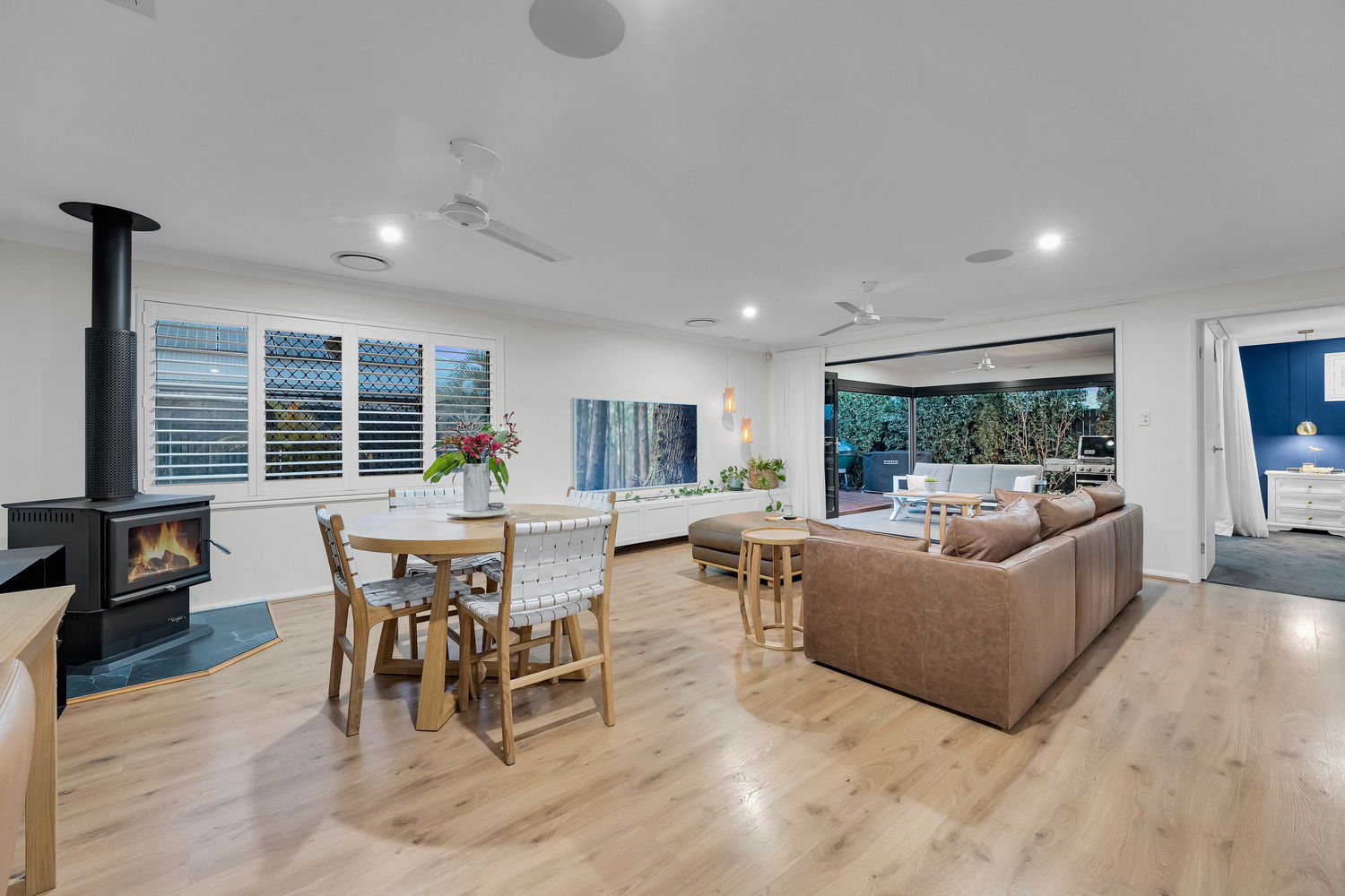 Including a stunning open-plan space with a hand-built Brisbane log fireplace, perfect for cozy winter nights