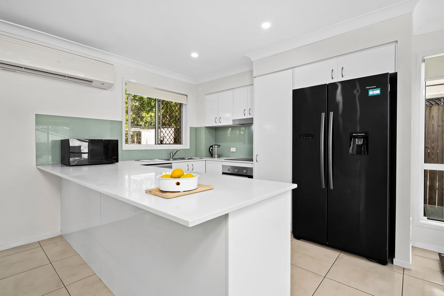 The kitchen is well-appointed with stone benchtops, an island breakfast bar, stainless steel appliances including an electric cooktop, oven, rangehood and dishwasher, along with ample storage and a large fridge space. Sliding doors open out to the private courtyard and covered patio area, providing a great outdoor space for entertaining.