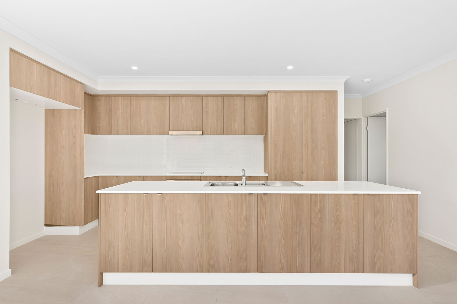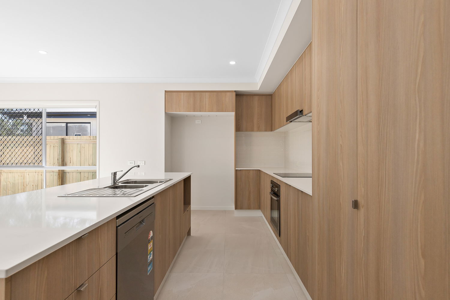 # Oversized fridge cavity and stone benches with ample bench space and extra storage under the island bench