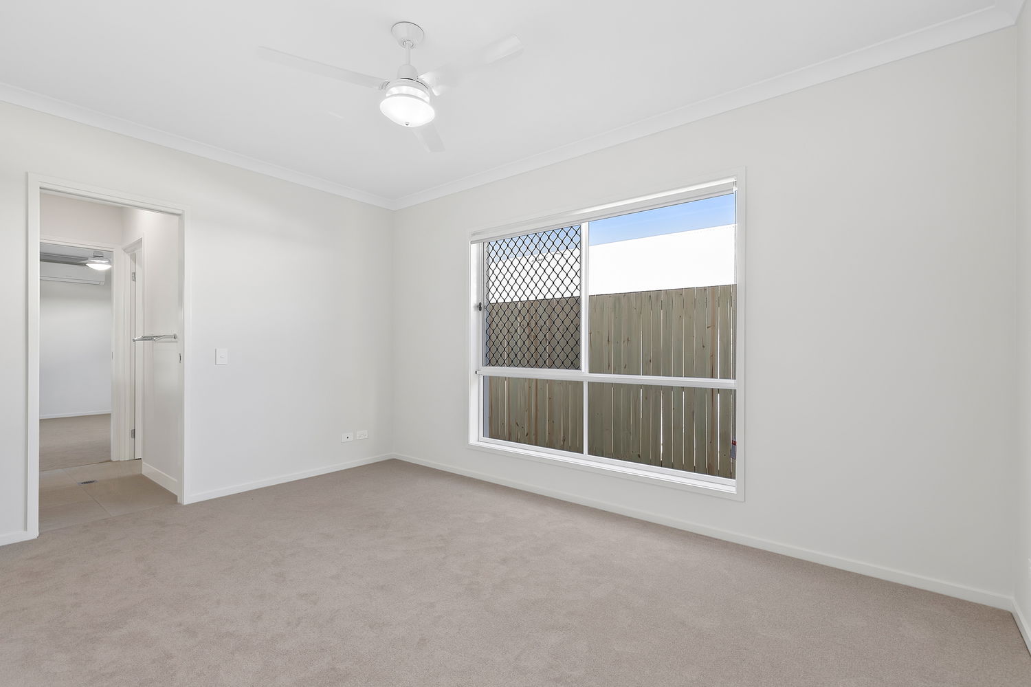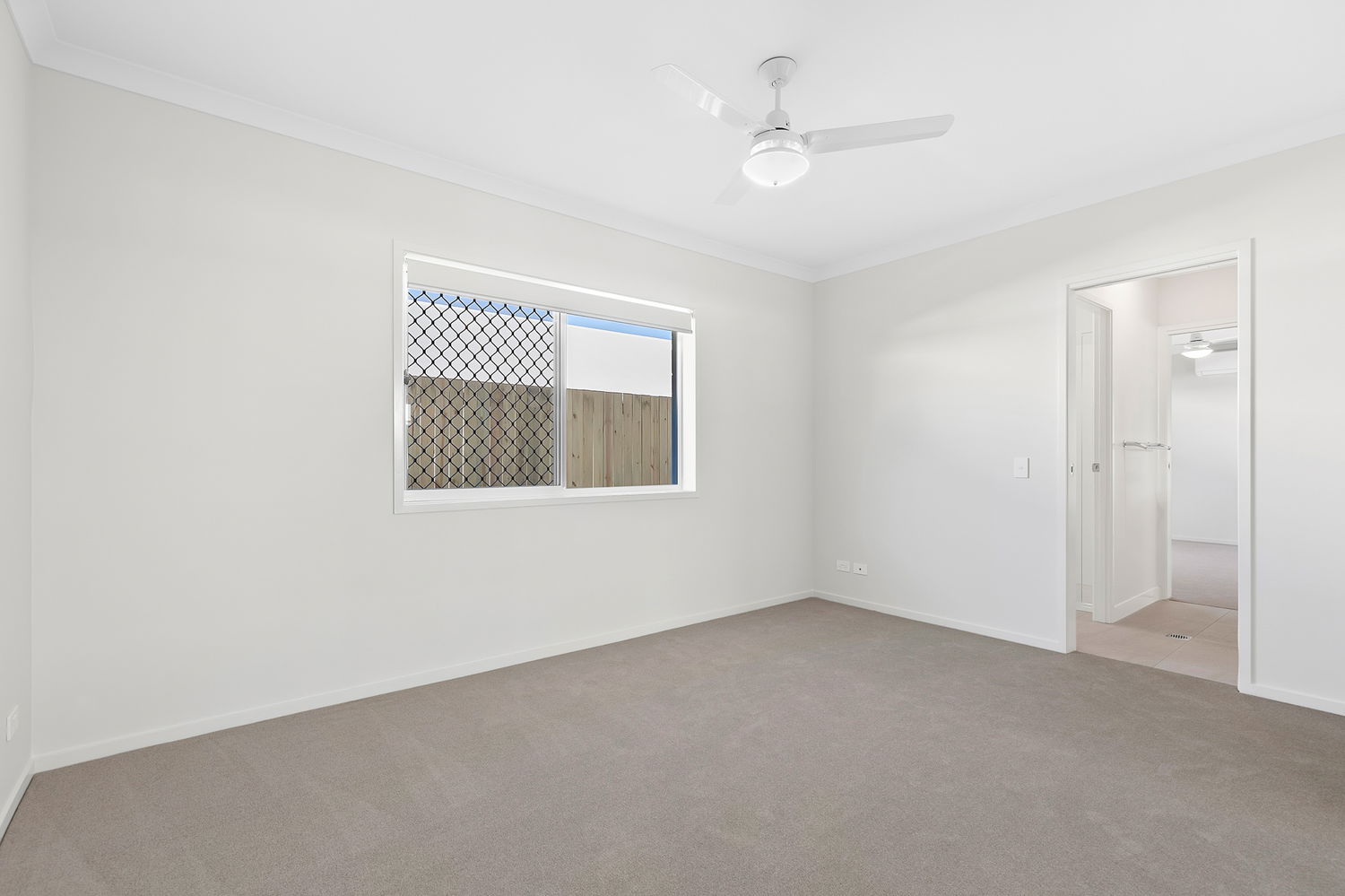 # Third with split system air conditioning, ceiling fans, built-in robe, and shared ensuite