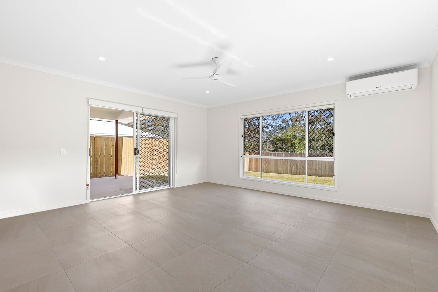 # Open plan living and dining with ceiling fans and air-conditioning – area opening to covered entertaining patio