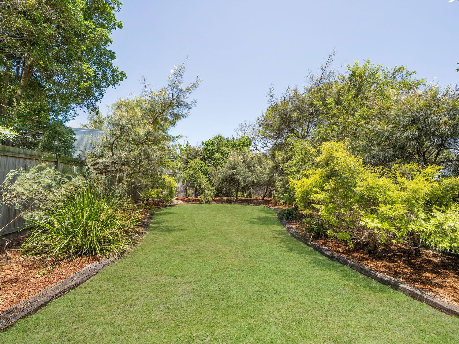 Stepping outside, you’ll find an impeccably landscaped backyard that feels like your own private retreat. Mature greenery frames the space, creating privacy and a tranquil backdrop for outdoor living.