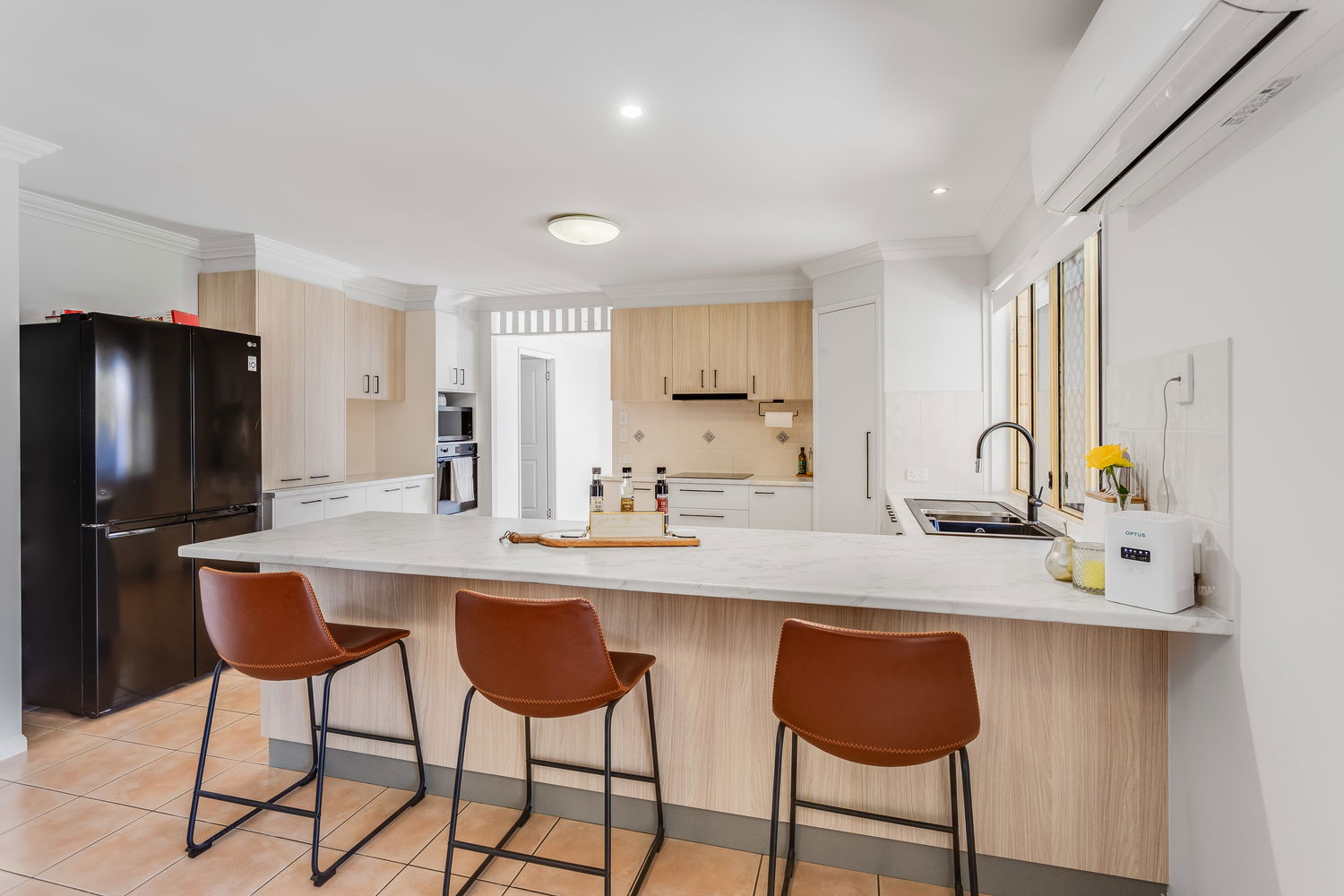 Inside, the layout is both practical and versatile, featuring two master bedrooms each with walk-in wardrobes and private ensuites — ideal for extended family or guests. The additional bedrooms have been refreshed with new carpet, ceiling fans and built-in wardrobes, ensuring space and comfort for everyone.