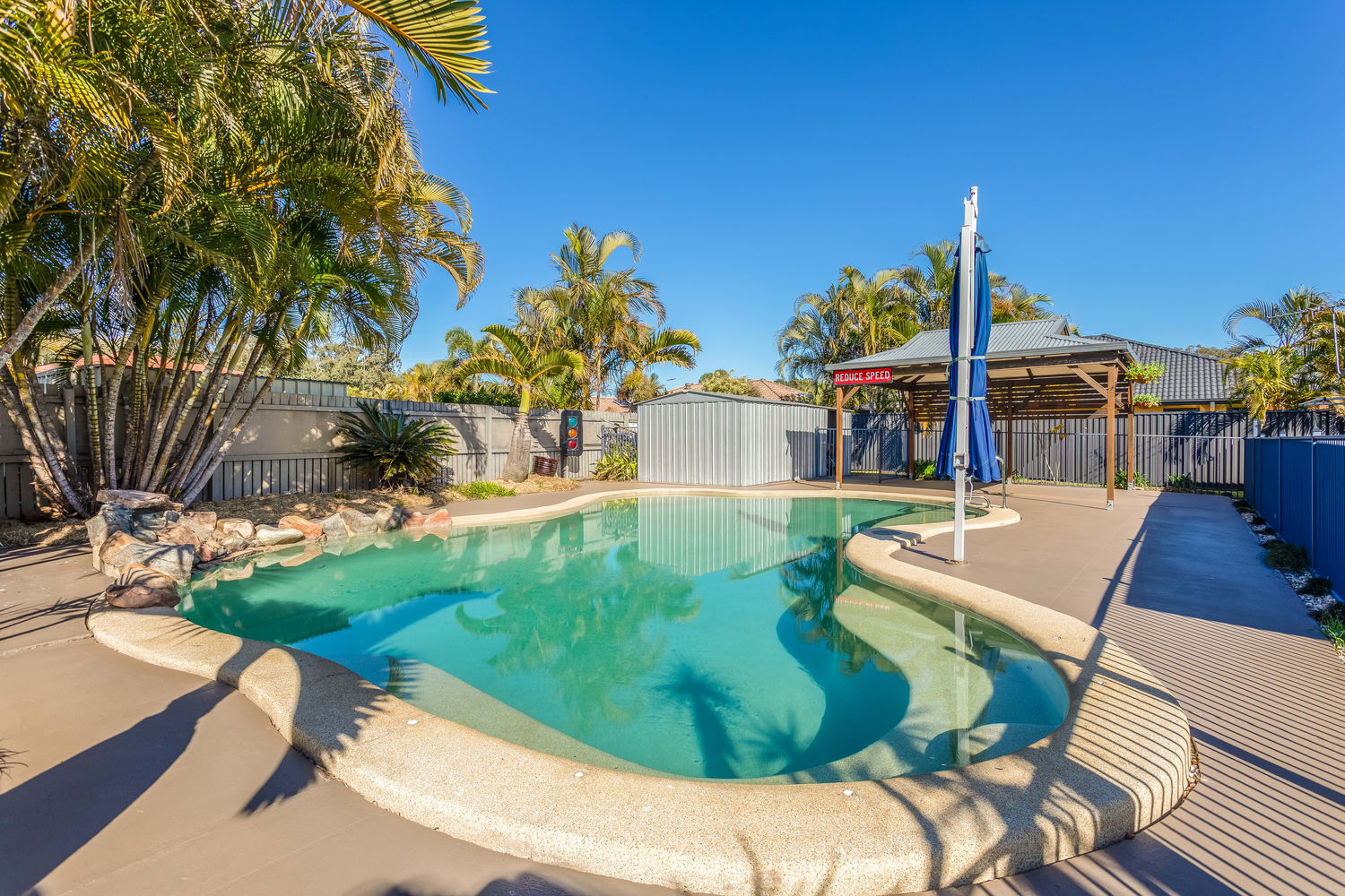 – Sparkling inground pool + poolside entertaining zone